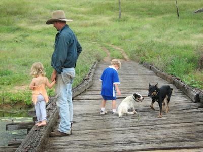 We had a run in the river recently (try saying that fast three times) and took the kids to check out the flow by the old bridge. Our two kelpie-cross pups, Jet and Hondo, came for the ride.
