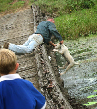 We had a run in the river recently (try saying that fast three times) and took the kids to check out the flow by the old bridge. Our two kelpie-cross pups, Jet and Hondo, came for the ride.