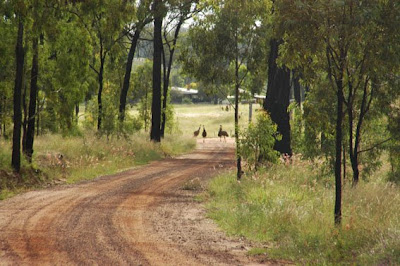 These emus seem to live around the bus stop area – in a next-door neighbours paddock, and while they are strange creatures, they are much more nervous of us than we of them.