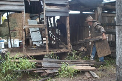 And so one rainy day at Granite Glen, my menfolk donned their Drizabones, girded their loins and tore the old building down.