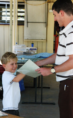 He has seen our little man from a shy little fellow who reluctantly climbed aboard the dusty school bus as an almost-five-year-old with knobbly knees and huge sad eyes, to the confident enthusiastic bigger (marginally) boy who nearly always gets his “z’s” round the right way.