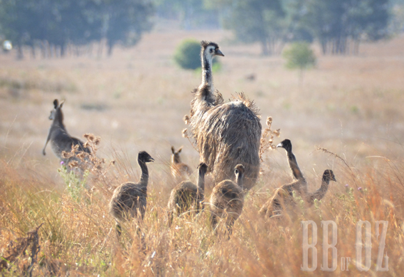 Yes, that’s a couple of roos photobombing the emus. Cheeky things.