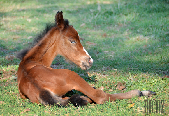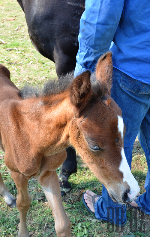 And yes, our little filly is quite unusual – she has two very different coloured eyes. One brown and one very pale blue! She appears to see fine from both eyes, is quite nimble already and has little fear of humans (see first pic in this series, as she wove her way between us while we were trying to do the intravenous shot for her Mama).